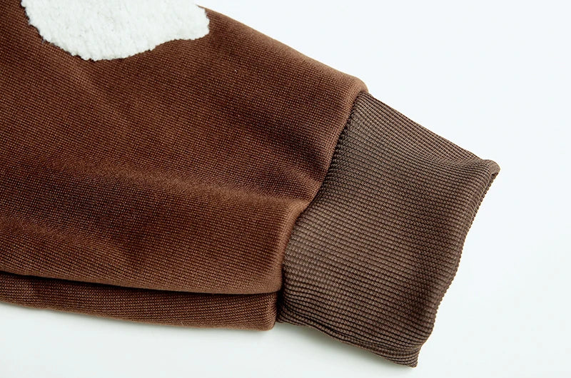 European and American Autumn/Winter Hoodie Embroidered Cross Flame Coat Plush Couple Loose Top Sweater