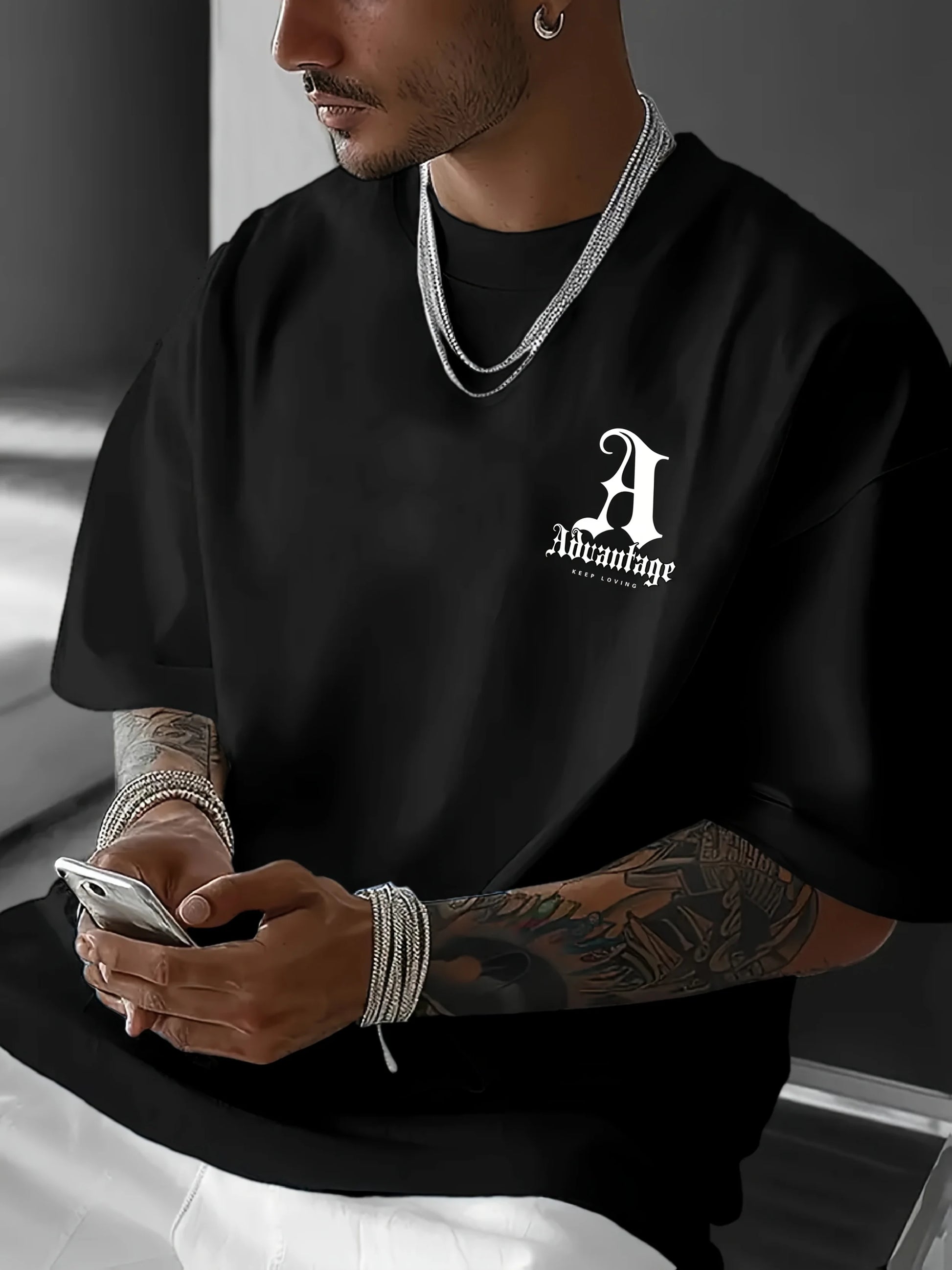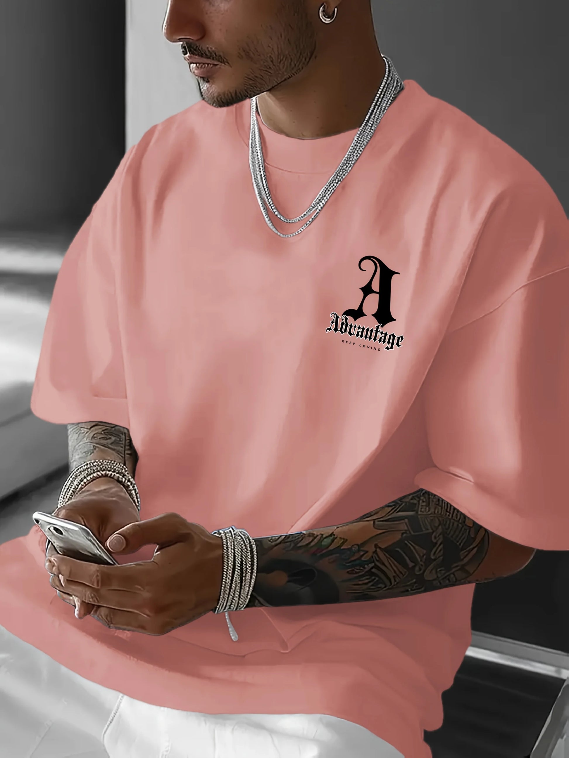 Men's summer 100 pure cotton fashionable casual sports loose back large LA letter printed round neck short sleeved T-shirt top